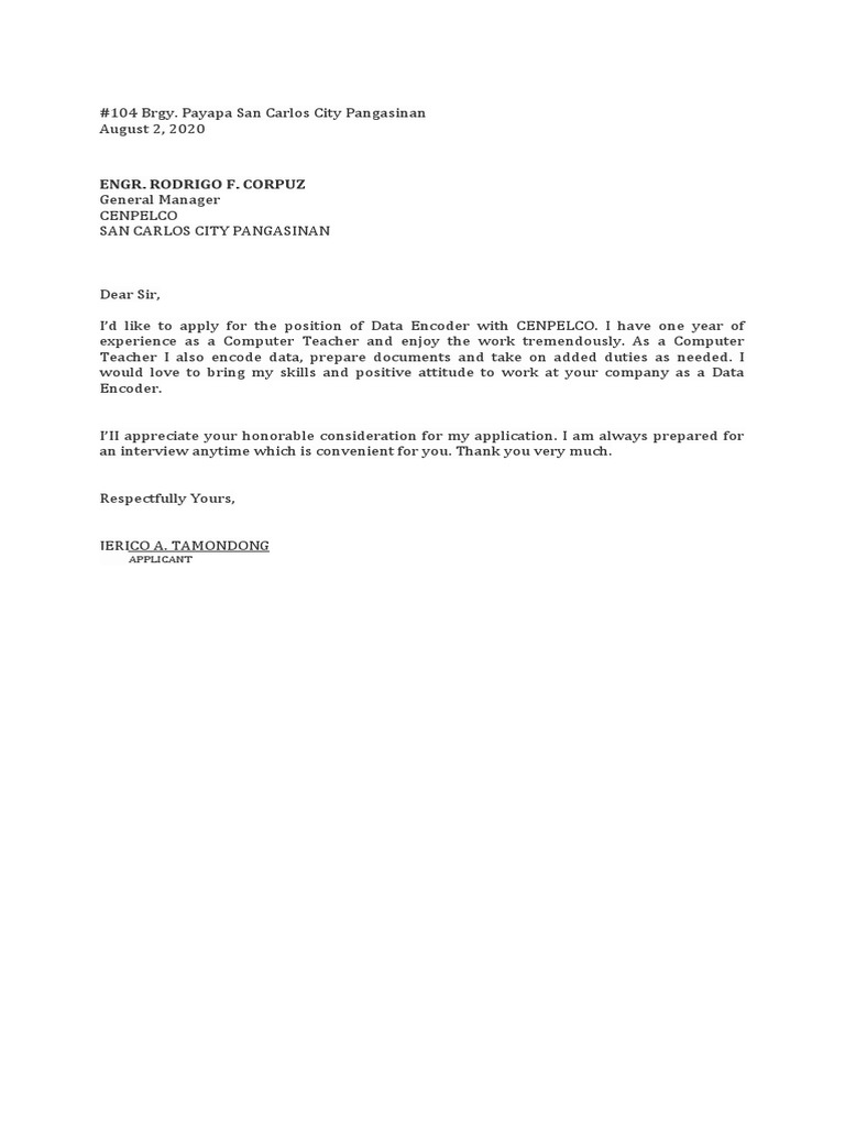 Example of job application letter for data encoder. Check spelling or type a new query. We did not find results for: Maybe you would like to learn more about one of these?